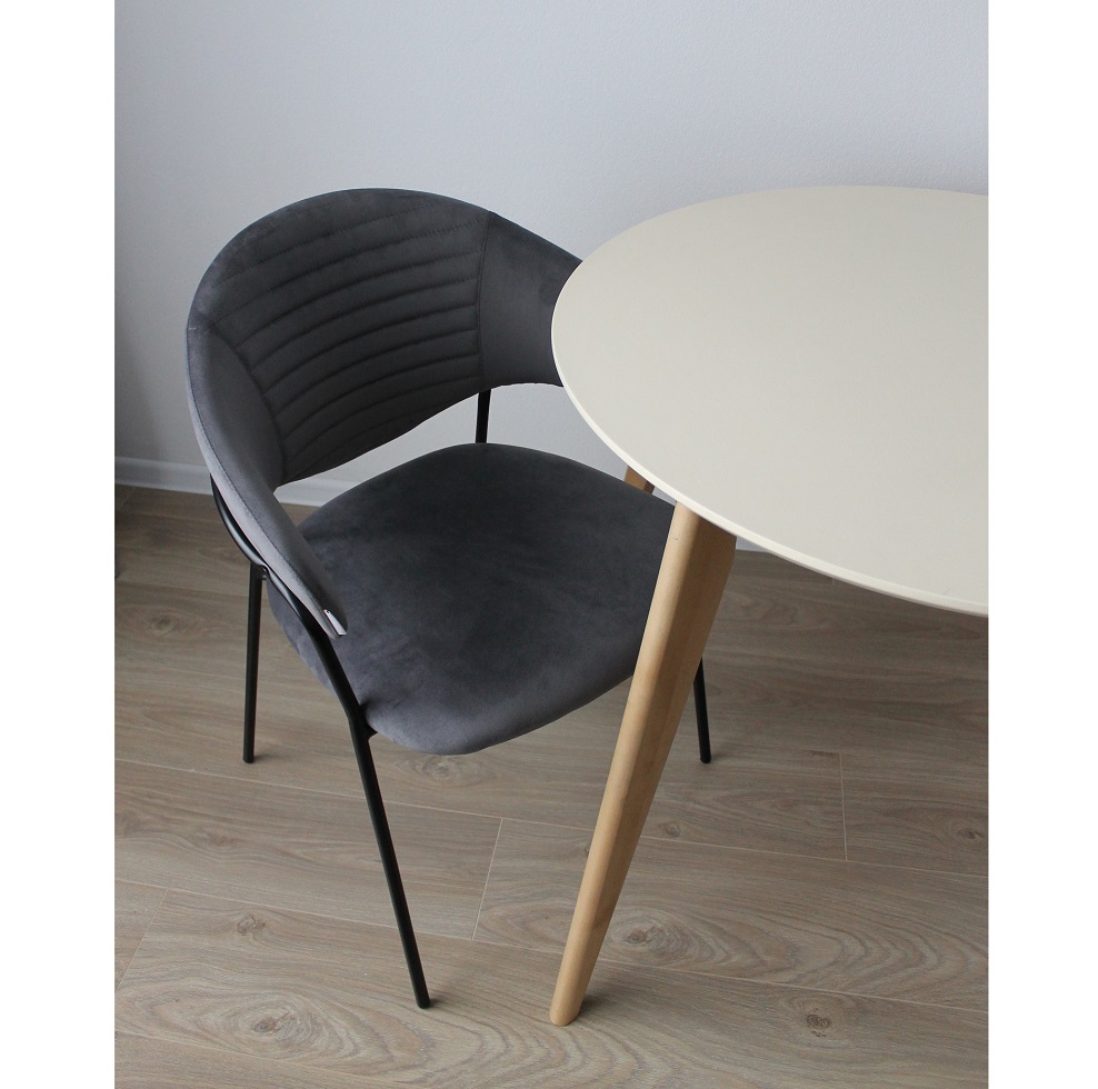 Украсить интерьер Вашей современной кухни и добавить комфорта от пребывания за обеденным столом поможет стул Хаг. Изделие имеет прочный металлический каркас,полукруглую спику и мягкое сиденье. Несмотря на визуальную легкость, это надежная модель выдерживает нагрузку до 120 кг. Особенности черные металлические опоры материал обивки - устойчивый к деформациям и приятный на ощупь серый бархат максимальная нагрузка - 120 кг